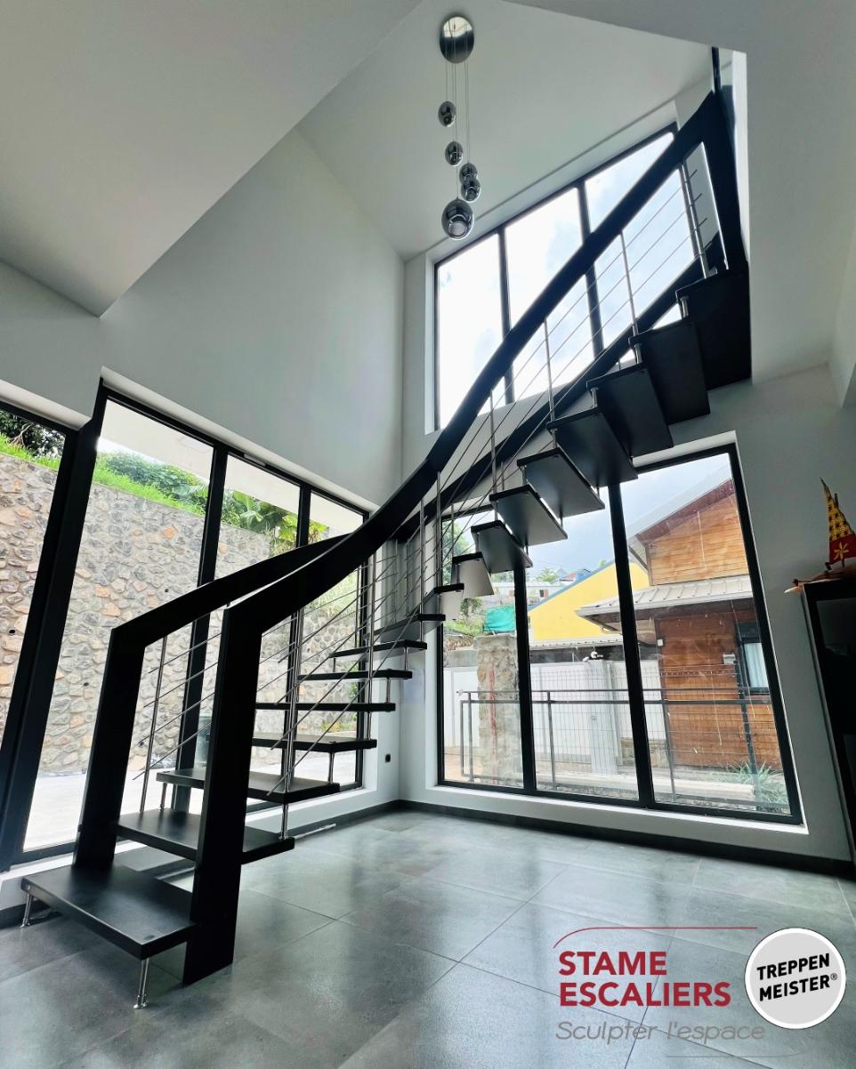 Apportant équilibre et confort, l'escalier Nova insuffle une âme et un caractère unique à votre pièce à vivre. Apprécié par les amateurs de design, ce modèle incarne l'alliance parfaite entre formes contemporaines et structures aériennes.